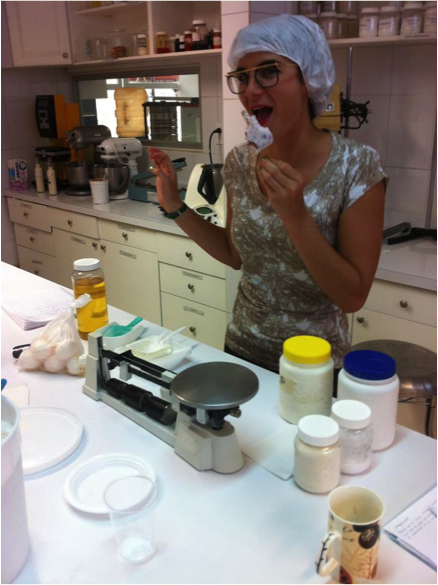 Le tomo tiempo para poder mezclar los ingredientes con el alcohol, ya que si metemos una botella de alcohol en el congelador, no se congelara. Tomo cursos y trabajo en un laboratorio haciendo bases para helados.